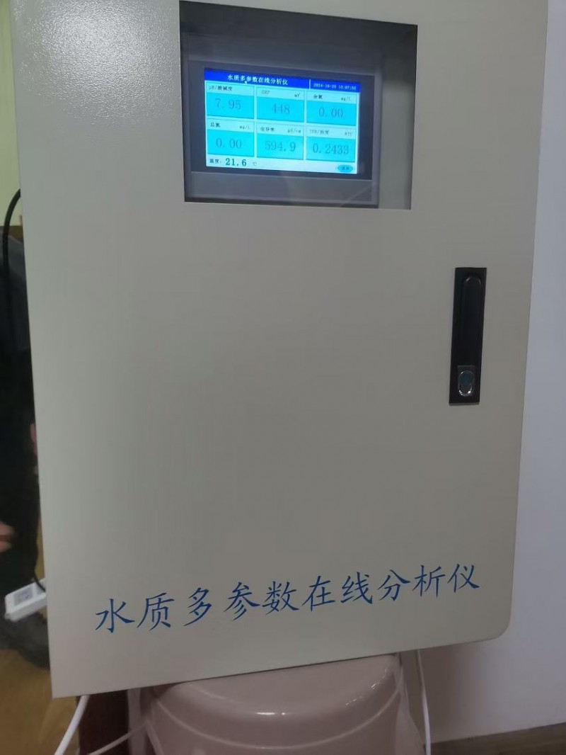 简介 1.1 概述 壁挂式水质多参数在线分析系统集成平台,直接将多种水质参数在线分析集成在一台整 机内部,在大型触摸显示屏上集中察看和管理; 该系统集水质在线分析、数据远程传送、数据库以及分析软件,为一体的新型产品,可 以扩展传感器定时药剂维护,系统定时自动除垢等功能; 灵活的配置组合,该系统机柜内部可配置水质浊度、余氯、二氧化氯、pH、ORP、溶解氧、 电导率(TDS)、温度常规八项参数,还可以应不同客户的实际需求,扩展压力、流量等更 多项参数; 水路部分采用本公司的应用研究成果——串联式流通分析装置,所需水样很少、实时性 强,一个细小的水样流经多种传感器时按照不同的技术特性和响应顺序排序,水样通过流通 装置时全部参数实时抓取,还可以实现外部大型单元的接续扩展; 具有多种路由选择的远程数据传输选配,可以在本公司大型数据服务器上利用平台分析 软件进行集中察看、态势分析等远程数据处理,也可以为客户建设自己的数据库和服务器进 行软件开发; 1.2 系统特点 1 参数个性化定制组合,可根据客户监测需求,灵活组合、选配、定制相应监测参数; 2 通过灵活配置智能仪器平台软件和组合参数分析模块,实现智能化在线监测应用; 3 引流一体化系统集成、串联式流通装置,使用数量很少的水样完成多种实时数据分 析; 4 内置减压装置及恒流速技术,不受管线压力变化影响,保证流速恒定、分析数据稳 定; 5 多种可选的远程数据链路,可租赁、可建设的远程数据库,让客户运筹帷幄之中, 掌控千里之外。 1.3 适用行业 1) 广泛应用于自来水厂、城市管网水质在线分析; 2) 小区二次加压水箱等多参数水质在线分析; 3) 农村自来水工程,水改水质安全升级;管网水质多参数在线监测仪操作说明书 4)江河、湖泊、水源地保护监视; 5)地下水污染监视预警系统。 1.4 其他应用 1)节能减排项目,中央空调循环冷却水自动运行管控; 2)疾病预防领域,泳池水质在线分析与药剂自动维护; 3)食品安全领域,食品、饮料、制药行业水源保障; 4)工业生产领域,冶金、石化等行业中过程用水的管控; 5)其他领域中的特殊定制化多参数在线分析与药剂投加。