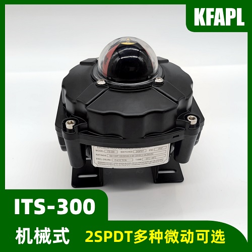 ITS300系列防爆型阀门限位开关盒是一种可远距离传送阀门开或关位置信号变送装置,有现场可视位置指示器,内部凸轮位置可快速调整,从而实现不同位置点信号反馈,自带NAMUR标准安装支架,可直接安装在气动执行器上。该系列限位开关盒采用压铸铝壳,采用双线接口,防爆等级ExdIICT6/ExtdA21 T80°C IP66,适用在气体及粉尘防爆环境。