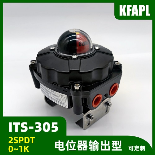ITS305机械式+刻度型:内置2组SPDT单刀双掷机械式微动开关(每组默认一个常开点NO,一个常闭点NC,一个公共点COM)和带电位器(TOCOS TOKYO RV24YN20S 可变电阻,可选1K默认,2K,5K,10K等,此款默认行程角度为100度,适合90度行程阀门用);