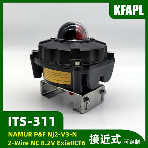 ITS311接近式:内置2组电感接近式开关(二线制常闭型NC/常开型NO,三线制NPN/PNP-NO/NC,可选工作电压10~30VDC普通型及8.2VDC NAMUR本安接近开关(NJ2-V3-N),特殊电压可提供定制服务);