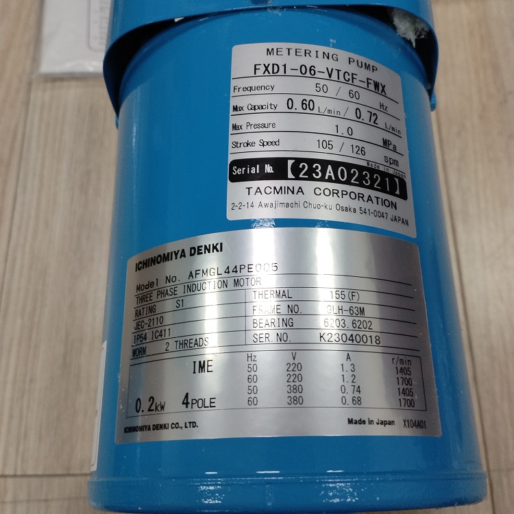 日本TACMINA计量泵系列:日本TACMINA公司拥有超过45年生产计量泵的历史和超过800,000台计量泵的生产经验,并荣获ISO9001质量认证及ISO14000环保认证。同时,TACMINA是日本大阪上市公司。