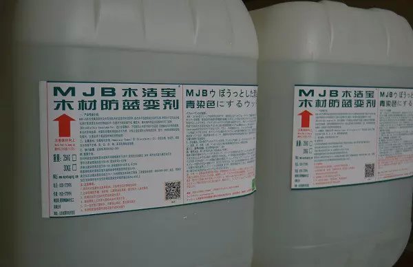 MJB-JQ木洁宝属高效抗流失型预防木材蓝变的有效药剂.能在水中迅 速形成淡白色乳液.其高分子活性成分能迅速扩散渗透至木材纤维组织中.迅速对引起的樟子松.橡胶木,枫木椿木等蓝变现象的可可二球孢(B0try0dlpl0dia theobromae Pat.进行全面触杀.