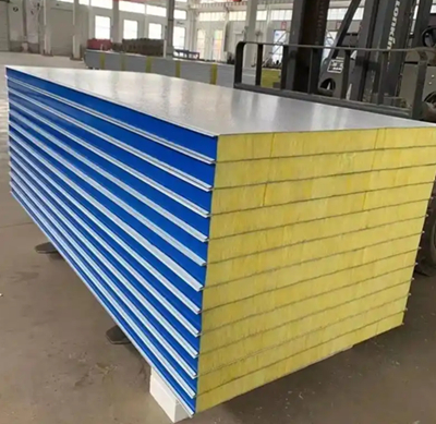 彩钢岩棉夹芯板厚度与普通岩棉复合板类似,但宽度多固定为950mm,长度可裁剪。