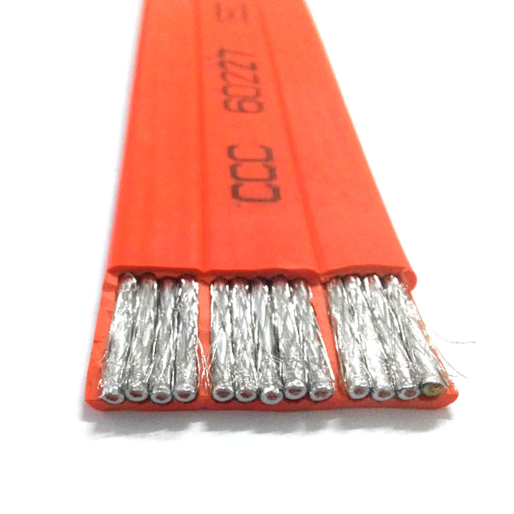 以下是关于 TVVBP13 芯屏蔽扁电缆的详细介绍: 结构特点 导体:采用多股精绞无氧铜丝,具有良好的柔韧性,能适应频繁弯曲和移动的使用环境。 绝缘层:由柔性环保 PVC 材料制成,耐油、耐水、耐腐蚀,耐高低温,同时具有较高的机械强度、优良的化学稳定性及介电性能。 屏蔽层:通常采用铜丝编织或铝箔屏蔽,或两者结合的方式,屏蔽覆盖率较高,可有效抵御电磁干扰,保证信号传输的稳定性。 护套:外护套为 PVC 材质,具有耐磨、耐候等特性,能保护电缆内部结构免受外界因素的损害。 排列方式:13 根芯线采用数字编号,平行排列放置,整体结构柔软,便于敷设安装。 技术参数 额定电压:芯线截面 1m㎡以上为 450/750V1。 使用温度范围:一般为 - 10℃~70℃,正常使用时导体最高温度为 70℃,通常不适用于 0℃以下,当温度低于 0℃时,可由买方和制造厂之间协商解决。 弯曲半径:固定敷设时,弯曲半径通常不小于电缆厚度的 8 倍;移动安装时,弯曲半径通常不小于电缆厚度的 15 倍。 绝缘电阻:绝缘电阻应不小于一定值,以保证电缆的绝缘性能,减少漏电和能量损耗。 导体电阻:20℃时导体最大直流电阻符合相关标准要求,例如 TVVBP 13×1.25 规格的电缆,20℃导体最大直流电阻为 16Ω/km。 应用领域 电梯系统:用于电梯轿厢与机房之间的电源、控制信号和视频信号传输,确保电梯的正常运行和监控。 工业自动化设备:在自动化生产线、行车、塔吊、起重机等设备中,作为动力传输线及控制、照明和通讯线路,满足设备频繁移动和弯曲的需求。 电镀设备:可安装在电镀设备中,为设备提供稳定的电力和信号传输。 其他领域:也可用于电缆轨道、台车等需要移动供电和信号传输的场合。