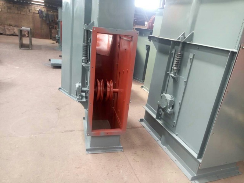 斗提机在头部卸载。卸载的形式有三种,即离心式、离心-重力式及重力式。