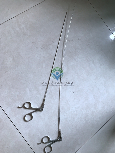 下面我们主要讨论钳头与内心连接断开的维修,首先我们要了解钳子的结构,了解它的拆装顺序。这把WOLF肾钳是由:钳头、连接片、钳头的固定套、连接销、内拉杆、外套钢管、手柄组成的一把钳子。它是通过手柄、内拉杆、钳头连接在一起来推动钳头的开合,手柄连接