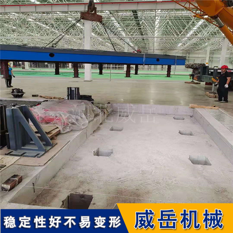 在实用性能与适配性上,台面经特殊防锈处理,日常使用后只需用干净软布擦拭即可,无需复杂维护,轻微污渍可通过专用研磨膏快速处理,维护成本低且不影响精度。常规规格涵盖 500mm×600mm 至 2000mm×3000mm,可根据三坐标测量机的型号、行程及测量工件尺寸定制专属尺寸,同时支持台面 T 型槽、安装螺纹孔等个性化加工,满足不同测量场景下的工装定位需求。平台承载能力可达 3-30 吨,既能适配小型三坐标测量机,也能满足大型三坐标测量机及重型工件的测量需求,实现 “一机一平台” 的适配。铸铁平台