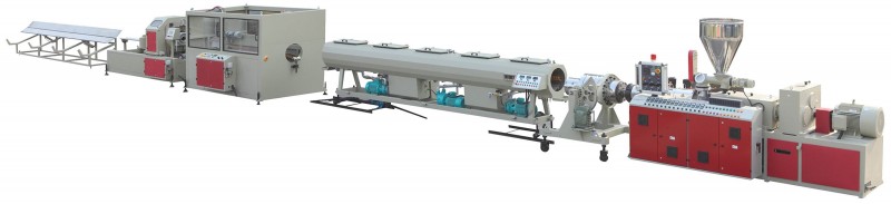 采用200/500 PVC混合机组;65/132锥形双螺杆挤出机;50-250mm U-PVC给水管模具;真空定型箱;三爪牵引机;环形切割机;放料架。