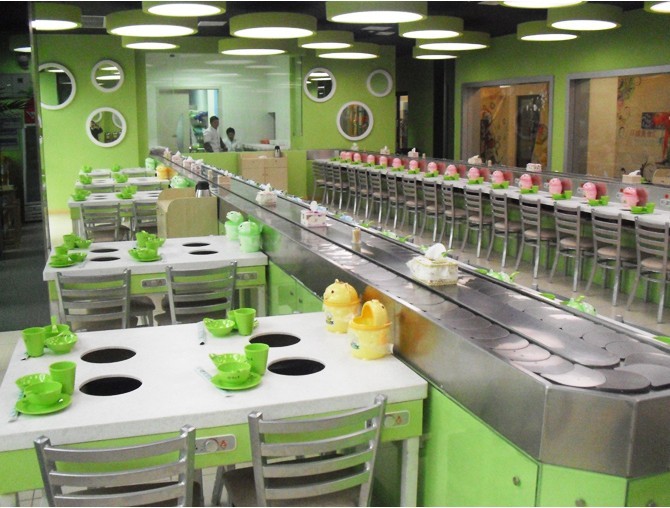 节省人力成本:采用回转机械输送菜品,免去人员传菜的环节,节省人力成本,增加收益率。