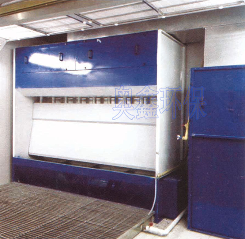奥鑫环保设备生产厂家直销wx:xax13864156928无泵水幕漆雾净化器是我公司在吸收国内外先进喷漆设备的基础上研制而成的高性能漆雾净化设备。没有水泵喷淋系统,直接采用排风机的抽风作用引导提升水箱中的水来形成循环水幕。含有漆雾的空气经过前面水幕的第一次拦截后随即进入的沸腾搅拌通道,气流掠经通道下方的水面时因高速作用将水带起引导进入通道内,气流到达通道的上方时流速降低,被带起的水因重力作用会有一部分水回落向通道口下方,这样就会与继续带起的水产生冲撞而成沸腾状,呈沸腾状的水珠与气流充分混合搅拌,颗粒物将被彻底清洗到水中,从而达到对漆雾颗粒清洗净化的目的。被提起的水其中一部分跟随气流组织进入集气箱,经分流格栅将空气与水分离,分离后的净化空气经由排风机排向室外,分离后的水则沉积在集气箱底部,汇集到溢水槽溢流到水幕板上形成循环水幕,有效地去除空气中的漆雾颗粒,给操作人员以洁净的工作环境。在含苯类漆雾较高的喷漆环境时可加活性炭净化器配套使用,经过多次吸附以达到净化目的。漆雾颗粒净化效率水箱中定期添加专用的漆雾凝絮剂,将被清洗到水中的漆雾颗粒凝结成渣块漂浮到水面上便于打捞,同时也可以改变漆雾的粘附状况,避免漆渣黏附到设备内侧,减少设备的维护工作量机或零部件喷漆。装配形式设计可根据客户的实际生产情况来确定。对于酸性、碱性、有毒等废气进行处理时,为防止废气外溢,在水幕顶前面添加一个吸气罩。有害气体直接经由管道、吸气罩直接进入水幕。设备材质根据不同的废气来选择:分为镀锌钢板、不锈钢等