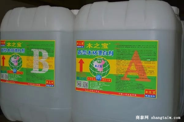 2、采用浸泡法时,首先将需要浸泡的木质产品表面的灰尘,木屑清理干净(以免影响漂白药液的渗透性)然后将需要漂白的木制产品直接放在1:1混合好后的A B剂溶液里进行浸泡处理,也可根据白度的要求对水浸泡,浸泡的时间越长白度越高。一般浸泡5-60分钟左右,A B剂1:1混合好后的溶液可在24-36小时内反复循环使用,超过36小时如需继续使用,可适当再加入A B混合好后的新药剂30-40%进行重新激活处理,以确保药剂持续有效。此工艺主要适用于木质工艺品,木皮,家具配件等小件 木制品的施工操作.