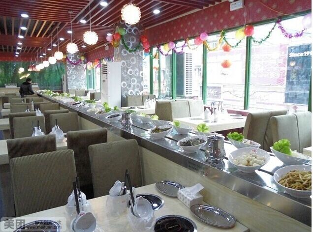 回转自助火锅设备 自助旋转火锅传送带设备 一 回转火锅的优势: