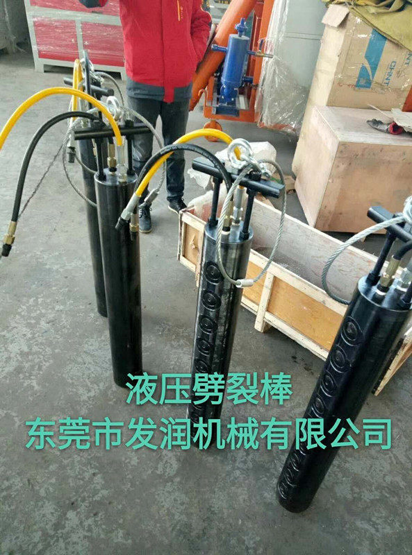 2、 液压静爆机以液压油为驱动力,并巧妙地应用斜契原理,使静爆器头破拆力达到几百吨,甚至上千吨,这样就可以在几秒钟时间内把上百吨的巨石轻而易举地开裂开来,从而使坚硬而巨大的岩石从山体中分离。