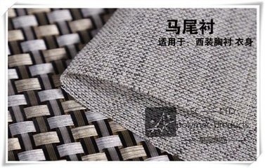 也可以做成用于各种箱包、手袋、钱夹 、公文包 、 腰带、鞋帽、沙发、汽车靠背座垫及室内装饰类的装饰用马尾衬布。该产品具有滑爽 挺括 透气性良好 耐洗 耐磨等优良特性,长期使用对人体有保健作用。