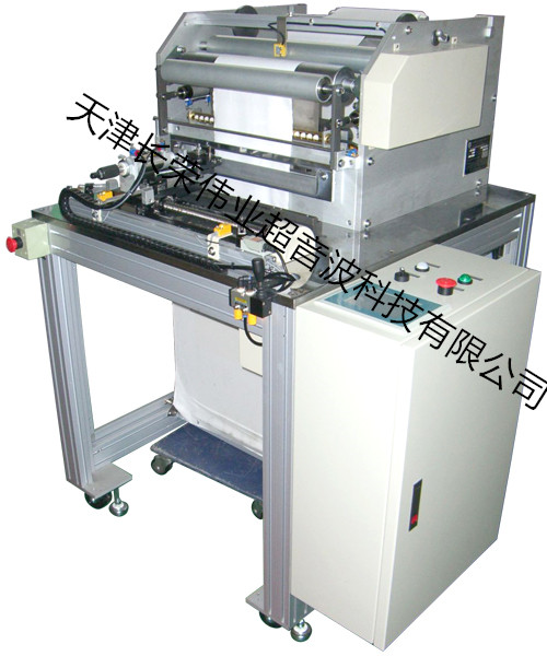 PLC调整长度及速度超音波熔接后,再用气压刀切断。