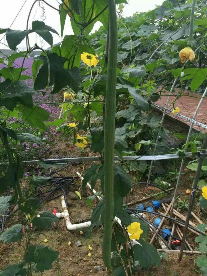 长度超过4米的丝瓜见过的人不多,但4米超长太空丝瓜更是离奇,该品种一般长度在1.5-1.8米,最长的超过4米。4米超长丝瓜比一座两层小楼还高,粗5-8厘米,食味好,籽极少,口感佳。4米特长丝瓜早熟,耐热性、分枝性强,适应性广,栽培需搭高架,全国各地均可种植,亩产高达5000公斤以上。是济南高效农业科技公司最新引进的新品种。