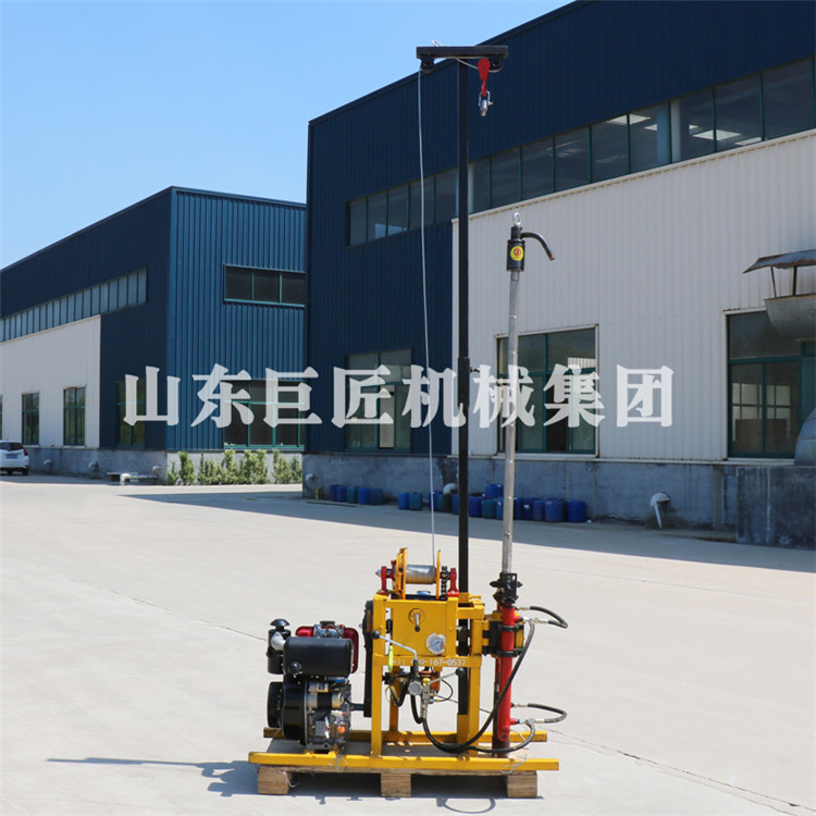 5.该型号轻便钻机配备自动卷扬提升系统,与塔架组合使用,大大节省劳动强度,提高工作效率。