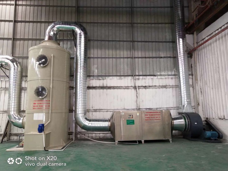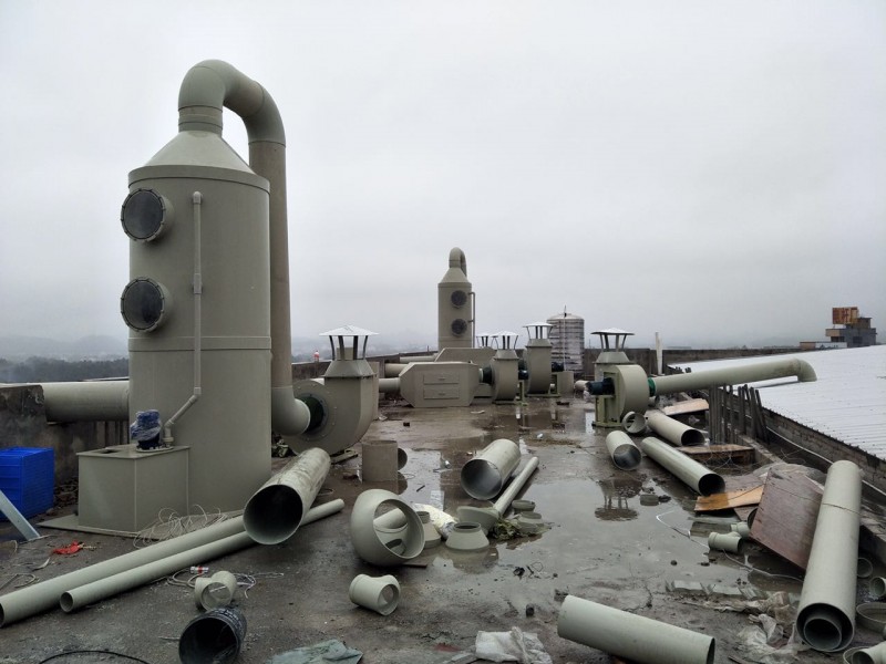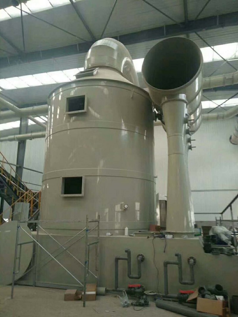 PP酸雾净化塔对于腐蚀性气体(如酸、碱性废气)的治理,目前多采用液体吸收法治理。采用液体吸收法治理该废气,关键在于净化设备的选择。目前,我公司自主开发了净化效率高、操作管理简单、使用寿命长的酸、碱性废气净化工艺与设备。该工艺与产品具有结构简单、能耗低、净化效率高和适用范围广的特点,能有效去除氯化氢气体(HCl)、氟化氢气体(HF)、氨气(NH3)、硫酸雾(H2SO4)、铬酸雾(CrO3)、氰氢酸气体(HCN)、碱蒸气(NaOH)、硫化氢气体(H2S)、福尔马林(HCHO)等水溶性气体。酸雾废气由风管引入净化塔,经过填料层,废气与氢氧化钠吸收液进行气液两相充分接触吸收中和反应,酸雾废气经过净化后,再经除雾板脱水除雾后由风机排入大气。吸收液在塔底经水泵增压后在塔顶喷淋而下,最后回流至塔底循环使用。净化后的酸雾废气达到广东省地方排放标准的排放要求,低于国家排放标准。
