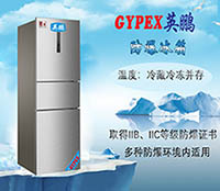 防爆冷柜主要应用在石油、化工、军事、医药、科研、实验室等领域,用于在较低温度下冷却储存药品试剂等常温下不易保存易挥发易燃易爆危险物品。按其结构分有单门、双门和多门及卧式、立式之分。它由制冷压缩机、冷凝器、冷凝器风机、蒸发器、温度控制器组成。为使其能在危险场所安全使用,我们同样采用复合防爆技术对冷柜进行防爆处理。压缩机、冷凝风机采用浇封或隔爆技术处理,温控器作为一个无源开关与防爆有源光耦固态继电器组成本质安全型温度自动控制系统。为保护压缩机不致损坏,采用延时型防爆固态继电器和过载保护及热保护器件,部分控制电器采用隔爆处理。为了防止静电所带来的危害,对冷柜内腔喷涂导电漆消除静电效应,使用更安全。