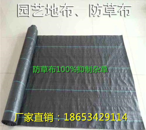 pp盖草布-常年直销果园大棚除草地布防草布地钉低价批发销售防草布又称为“园林地布”、“杂草抑制席”、“抑草布”是一种纵横编织的塑料编织布,透气性好、渗水快、防治杂草生长的一种园艺和农业用地面防草布。 大部分地区为了防治杂草生长,阻止植物根系钻出地面,一般采用吹塑的PE膜作为防草布,由于PE膜是透明的,阳光能够透过PE膜照射到PE膜下面的杂草,杂草能进行光合作用,起不到防杂草生长的作用,而且这种PE膜的密封性较好,透气性较差,渗水能力不足,使得植物根部的吸水能力不足,影响植物的生长,透气性较差地温增高也可能导致植物的根部腐烂。