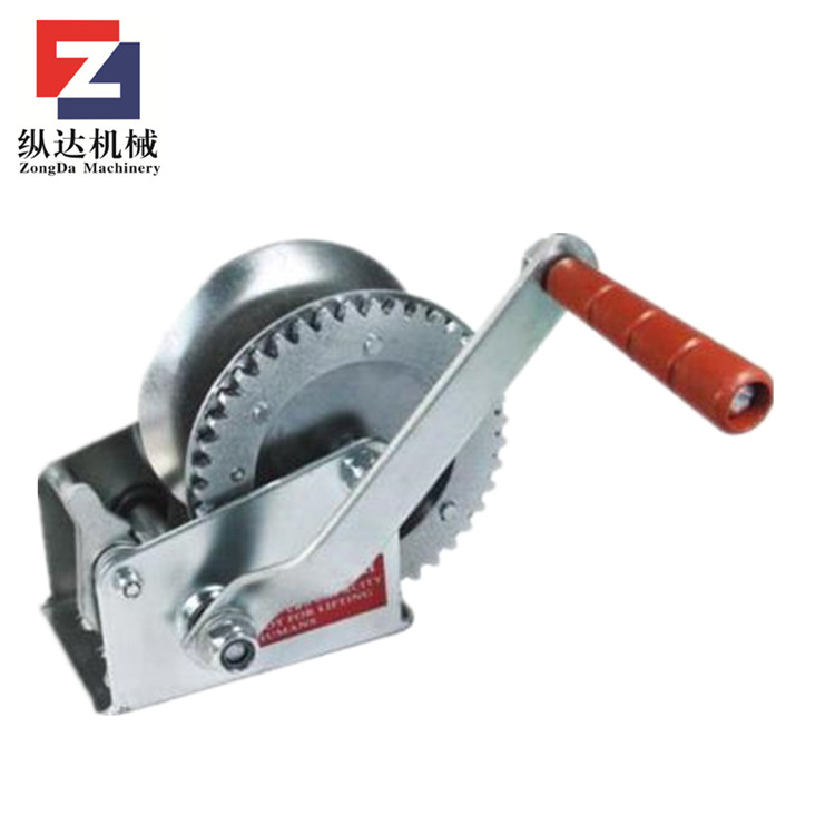 手动绞盘又称手摇绞车,是一种机械用具,它是通过用手摇动绞车卷筒来拉动货物的。由齿轮驱动的绞车钢丝绳卷筒通过转动绕在它上面的钢丝绳来拉动货物。它带有自动刹车装置,这使操作时更安全。当绞车钢丝绳拉着货物,且绞车卷筒保持不动时,刹车就业会自动开启。