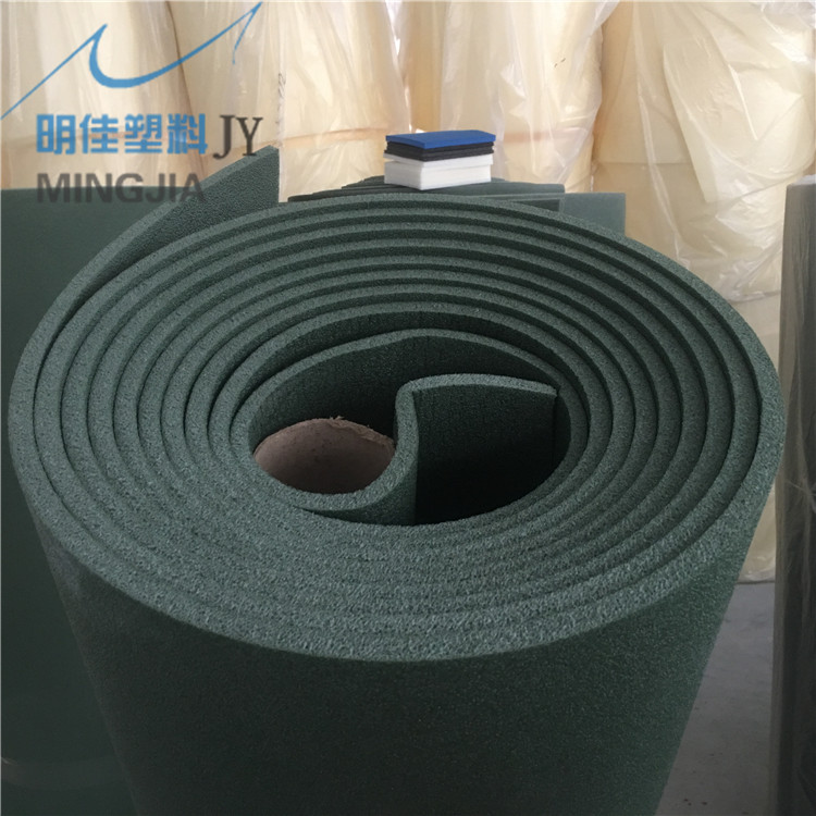 化学交联聚乙烯发泡材料,该产品是将聚乙烯与各种填料混合后,加入化学交联剂,制成的高分子泡沫材料,具有良好的力学性能、卓越的隔热和隔音性能、价格便宜、易二次加工成型、环保、可赋予其良好阻燃性能的软质泡沫塑料,广泛应用于汽车内饰、体育休闲、旅游用品、儿童玩具、医疗保健及包装、冷冻、建筑、装饰等日常存货行业。