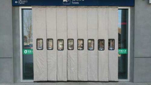防风效果:重叠式安装结构,气密性佳,配以门帘本身重量,在恶劣气候的风速下,也不会过度弯曲而影响正常作业。