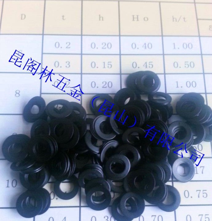 最高级的弹簧材料 50CrV4 ,可保证-15 150℃ 工作温度下弹簧特非常好。 适合于碟形弹簧在6毫米厚度以下