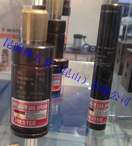 韩国BESTEC氮气弹簧特点:1.经久耐用,确认活塞杆累计运动1亿mm减压率在5%以下,正常使用寿命达200万次; 2.与同类产品相比,具有体积更小弹力更大的特点,有效节约模具空间; 3.本产品采用整体钢材铣削加工成型方式,确保产品安全可靠; 4. 韩国进口氮气弹簧参数:氮气弹簧在140bar以上高压下运动,密封圈的磨擦或工装时引起的活塞表面划伤,往往造成氮气弹簧漏气并提前影响使用效果,我司的产品全部进行了特殊热处理, 使活塞的硬度达到HV1000以上,利用特许标志号0028637号特殊研磨技术研磨活塞杆表面包,使其表 面粗糙度达到Ra0.02以下,使表面坚硬而光滑降低了摩擦系数,极大提高产品使用寿命.